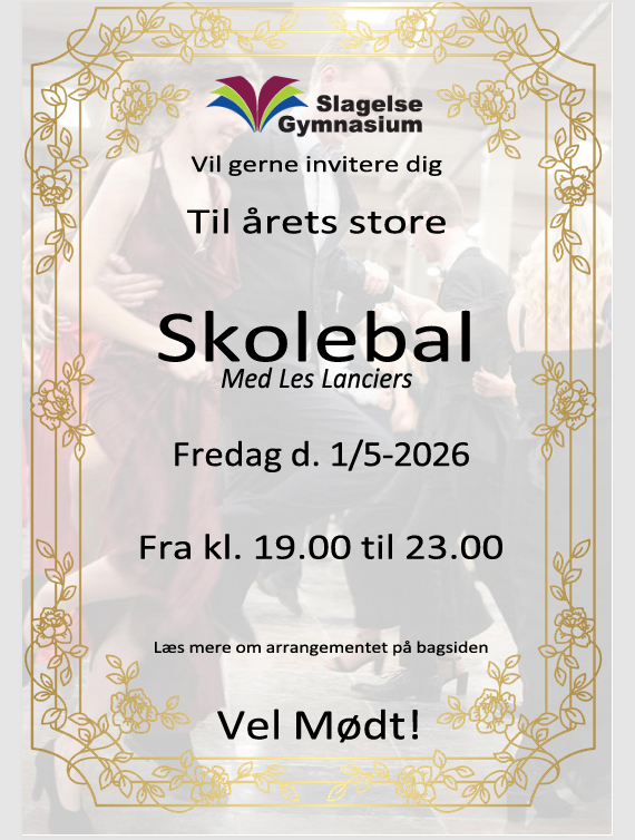 Du og dine nærmeste inviteres hermed til at deltage i skoleballet - et af årets absolutte højdepunkter, hvor stemningen er i top, når eleverne danser den sagnomspundne og traditionelle Les Lanciers i deres stiveste puds.